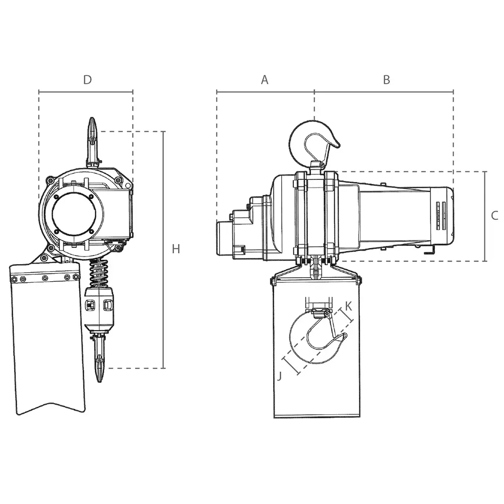 DELTA Elektrische kettingtakel US – 230V – 0,5 ton – met 6 meter hijshoogte – enkele snelheid – 1 part