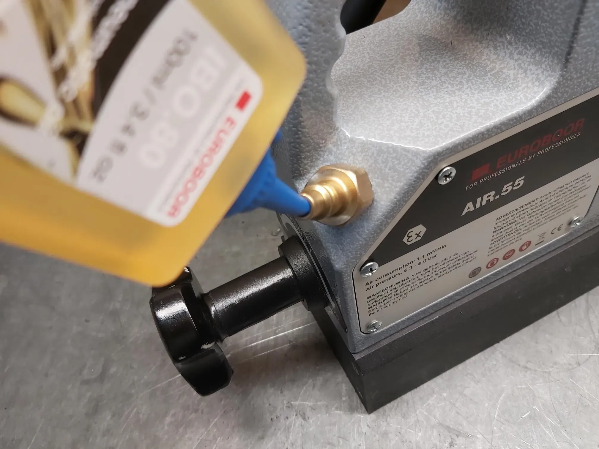 De draagbare Euroboor AIR.55 pneumatische boormachine is uitgerust met een lucht aangedreven, vonkvrije motor en een niet-elektrische, permanente magneetvoet. Aangesloten op een compressor, kan de machine worden gebruikt voor het boren op vlakke werkstukken waar elektrische machines minder handig of niet toegestaan zijn, vooral in gebieden en ruimtes met potentieel explosieve atmosferen, zoals offshore en petrochemische industrieën, evenals mijnen.