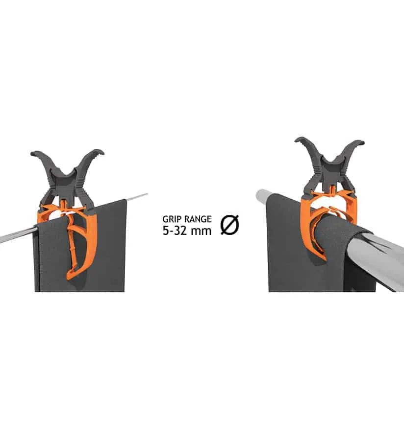 Met het flexibele klembereik van 5 tot 32 mm is de FIXCLIP breed inzetbaar. FIXCLIP is er in twee kleuren: grijs/oranje en wit/oranje. Gemaakt in Zweden van hightech plastic (i.s.m. Dupont) wat sterk, flexibel en UV bestendig is.