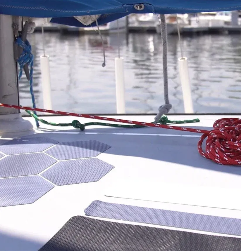 Er zijn drie kleuren Grip Tape, zwart, grijs en transparant wit. Heb je een logo op je boot zitten, en wil je die zichtbaar houden? Dan is de transparant witte versie een goede optie. Deze versie is ook geschikt voor op een luik. Zo komt het licht nog steeds binnen, maar kun je er ook veilig op lopen.