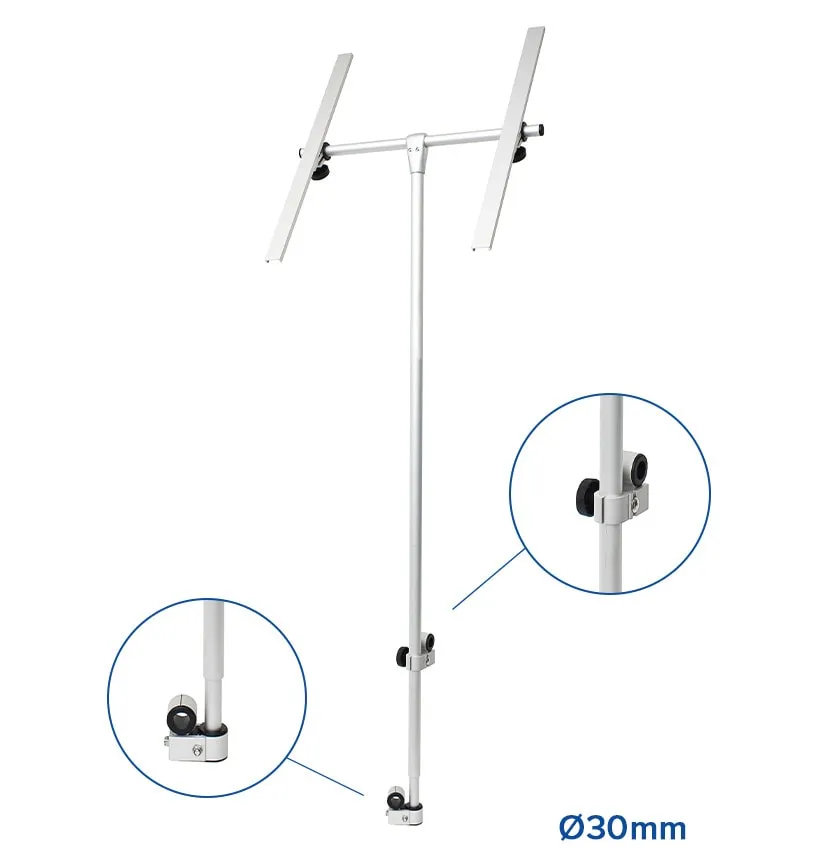 Deze mast bevestig je eenvoudig met de meegeleverde NOA fittingen aan de hekstoel. De fittingen zijn geschikt voor buisdiameter 25mm, de gebruikelijke maat aan boord. De breedte van de horizontale buis van de zonnepaneelhouder is 600mm. De twee zonnepaneelhouders hebben een lengte van 650mm. Levering is compleet en klaar voor montage: