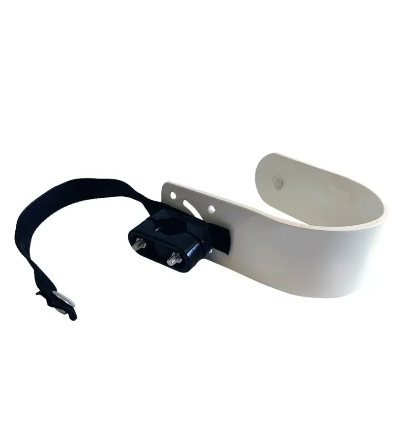 Deze minimalistische beugel voor een hoefboei is een mooie aanwinst op je hekstoel. Het witte metaal oogt een stuk strakker dan een beugel van rvs-draad. Met het riempje en de druksluiting borg je de hoefboei ook eenvoudig. Het ontwerp klemt de hoefboei stevig vast, waardoor deze in flinke zeegang ook goed op z’n plek blijft. Geschikt voor railingdiameters van 22-25mm.