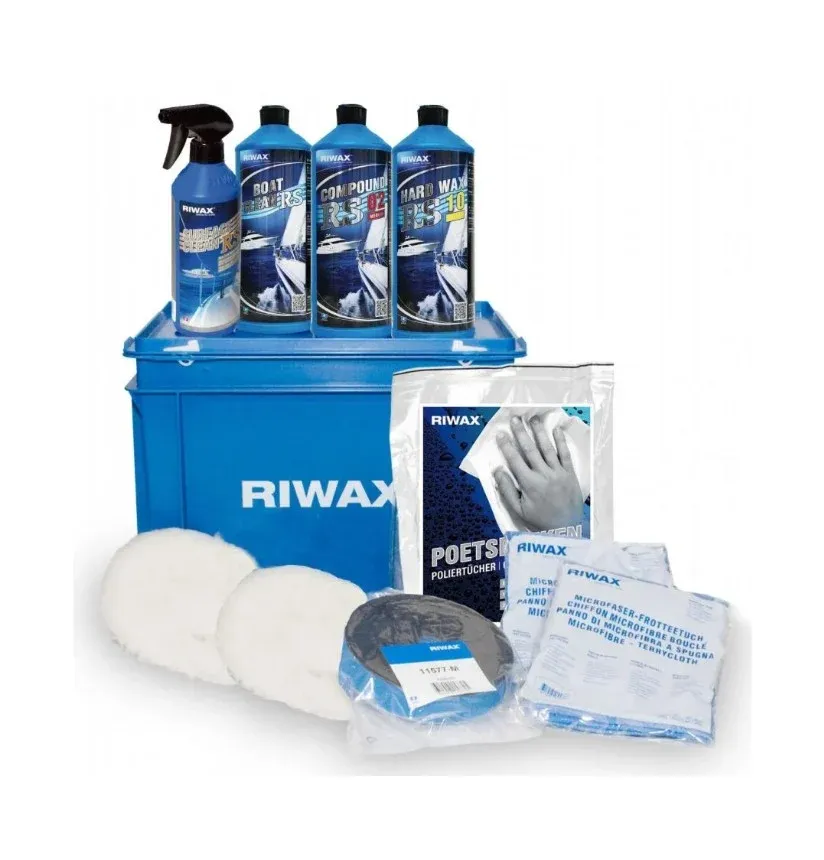Heb je al een poetsmachine? Met dit glanspakket van Riwax haal je ook alle poetsmiddelen in de huis om je boot te laten stralen. Gebruik het stappenplan van Riwax (meegeleverd in het pakket) en kom gerust langs in onze winkel voor nog meer praktische poetstips. Klik hier voor het glanspakket inclusief machine.