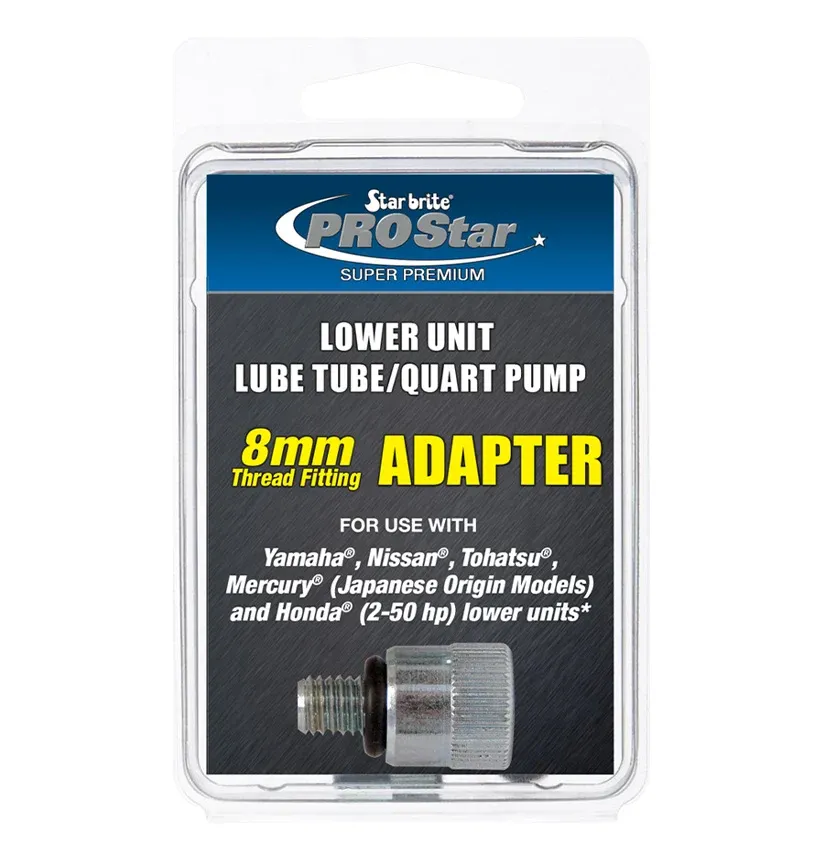 - De 8 mm adapter past op de staartstuk-aansluitingen van: Yamaha, Nissan, Tohatsu, Mercury (4-takt), Mariner (4-takt) en Honda.