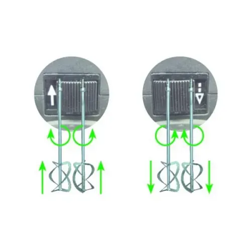 - De sterkste dwangmixer met twee tegen elkaar in draaiende gardes, links en rechts draaiend, voor het sneller homogeen mengen van materialen zoals epoxyharsen, granulaten en 2-componenten materialen tot 80 kg waarbij klontvorming tot een minimum wordt beperkt.