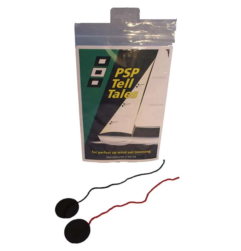 Uitgebreid setje tell tales van PSP die je helpen bij de optimale zeiltrim. Tell tales zijn de ‘verklikkers’ die je vertellen hoe de wind langs de loef- en lijkant van het voorzeil stroomt. Zowel voor toer- als wedstrijdzeilers zeer nuttig bij het trimmen op hogere koersen. Met de vallen, schoten, overloop, onderlijkstrekker en halstalie kun je vervolgens aan de slag om de trim te optimaliseren. Een goed artikel lezen hierover? Klik hier.