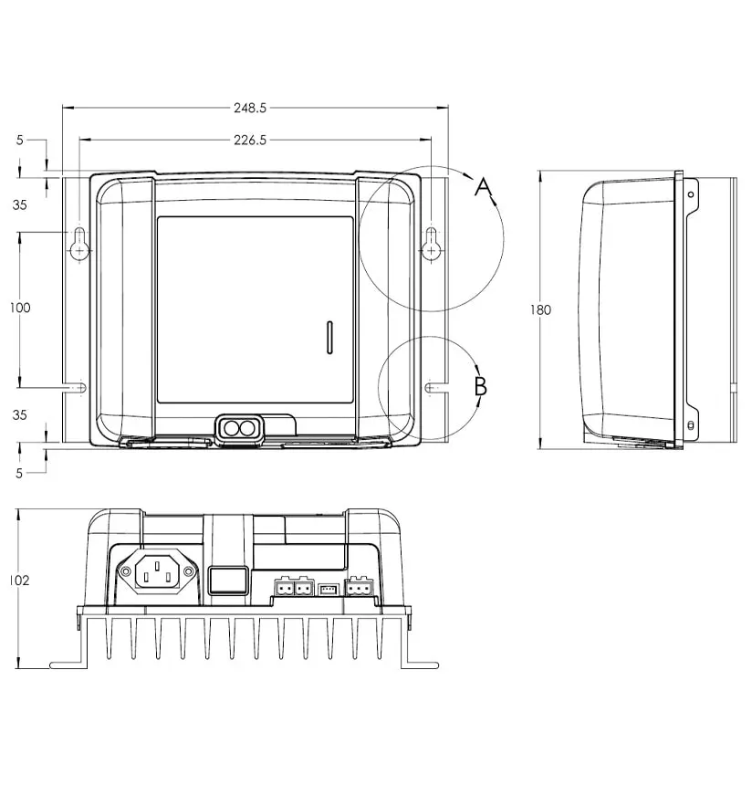 H x B x D: 180 x 249 x 100 mm