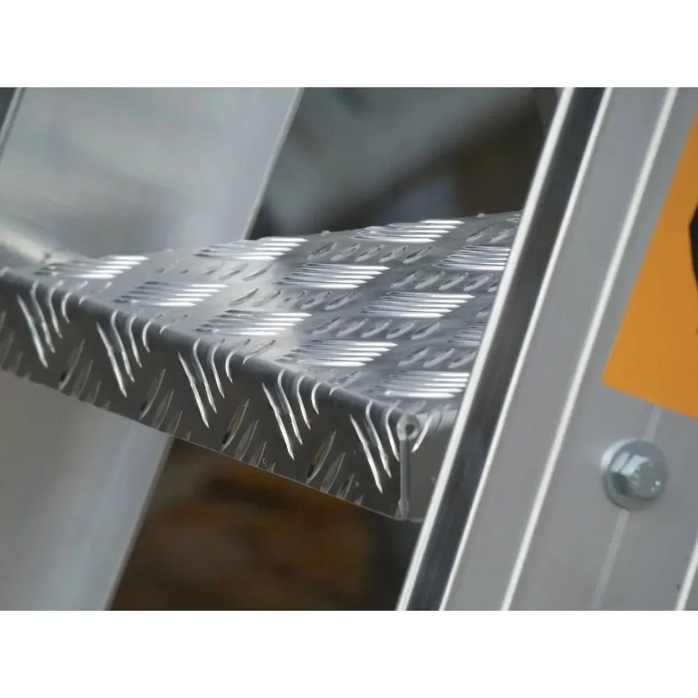 - Stevig aluminium platform: Het platform is gemaakt van stevig aluminium en biedt een veilige werkruimte die zelfs onder zware belasting stabiel blijft.