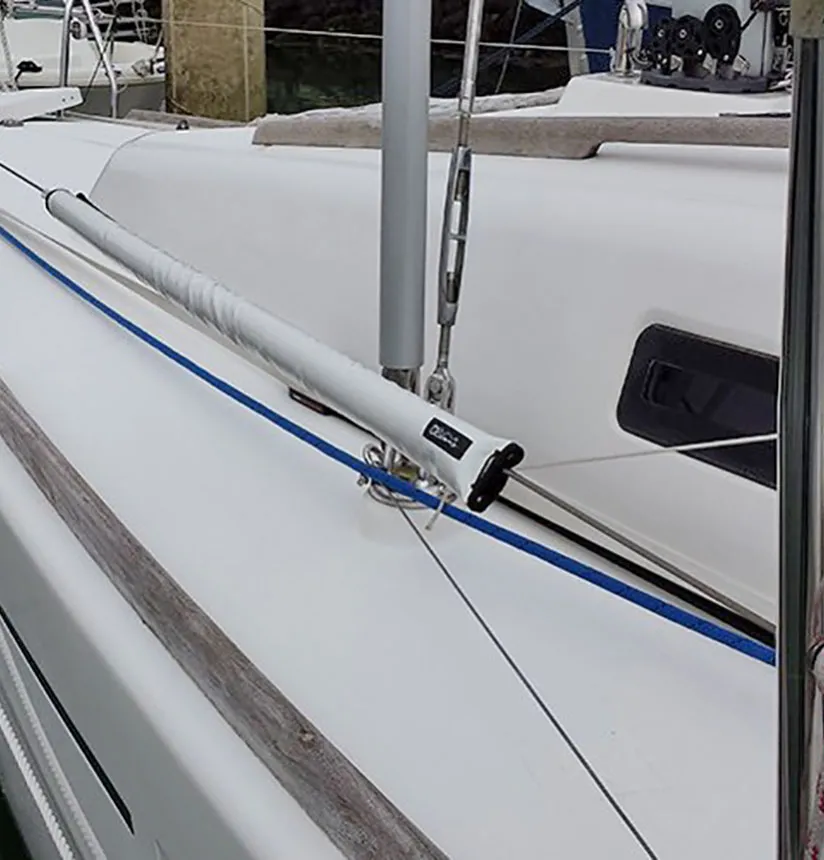 Deze robuuste zeerailing bescherming van Outils Océans maakt het hangen of leunen tegen de reling een stuk comfortabeler. Geliefd bij bemanning!
