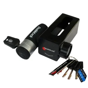 Messing hangslot met RVS beugel. Huis en beugel voorzien van kunststof bekleding en afsluitdop. 70 IB / 45 C blue.
