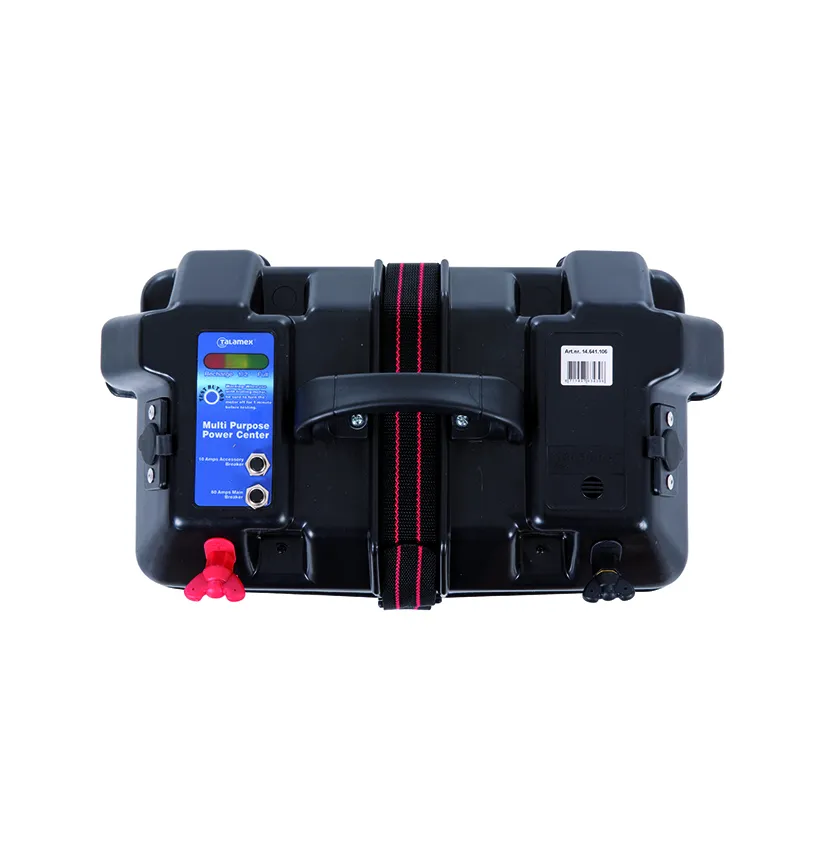 Handige accubak voorzien van deksel met voorgemonteerde bedrading voor accupool aansluiting, 2 x 12V stopcontact, externe vleugelmoer aansluiting voor het aansluiten van bijvoorbeeld een elektromotor of acculader. Tevens is de accubak voorzien van een handige accutester; met een druk op de knop bent u op de hoogte van de accu status.