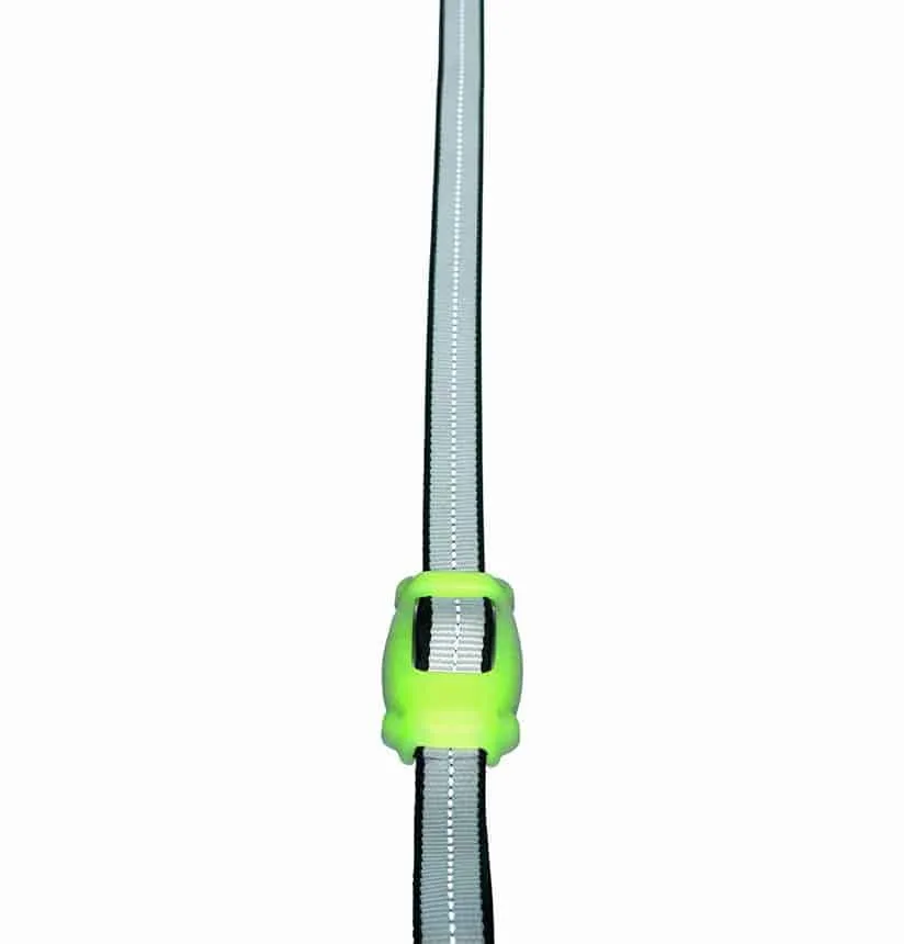 Het enige wat je nog nodig hebt zijn bevestigingspunten aan dek: dit kan een stevige kikker zijn of een dekoog of putting. De zeer degelijk uitgevoerde band is voorzien van ingewoven reflectieve draad die goed zichtbaar is bij nacht en ook de omhulsels van de gespen zijn ‘glow in the dark’.