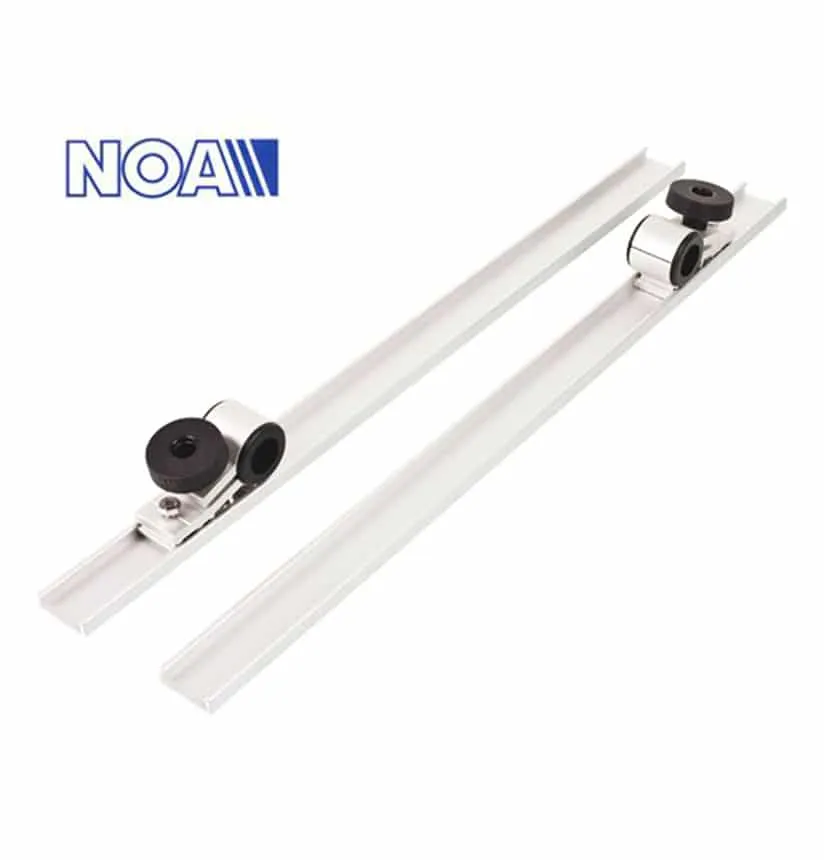 NOA zonnepaneel houder voor gemakkelijke en stevige montage van een zonnepaneel op de hekstoel. De hellingshoek ten opzichte van de zon is volledig verstelbaar en het paneel kan op het frame worden verplaatst om schaduwen te vermijden. Perfect te combineren met de zonnepanelen van Sunpower. De lengte van elke houder is 650mm. Levering is compleet en klaar voor montage incl. NOA fittingen. Vuistregel: geschikt voor maximaal 100 Watt glaspaneel. Bij grotere panelen is het verstandig het paneel met een derde ligger te ondersteunen.