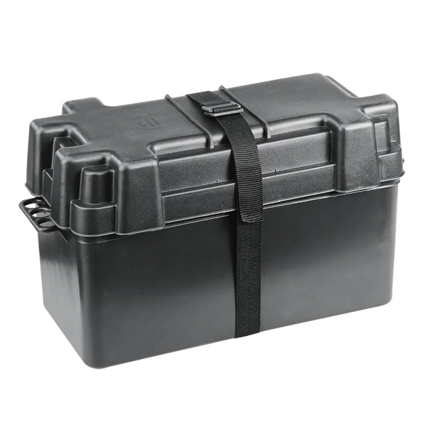 Je accu goed beschermen tegen invloeden van buitenaf doe je met deze accubak van kunststof. Hij is ontworpen voor accu’s tot 385mm lang. Bij de bak krijg je een mooie strap waarmee je de boel steven vast zet. De accu zal hierdoor minder bewegen. De bak houdt je accu schoon en droog, is zuur-, UV- en hittebestendig.. Als de accu lekt, dan komt dit ook niet in de boot terecht. De kabeldoorvoeren zorgen voor een mooie, nette installatie.